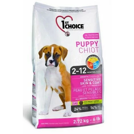 La formule 1st choice peau et pelage sensibles est un aliment complet pour chiot de toutes races est idéal pour aider à batir la première protection ; la barrière cutanée. De plus les protéines animals utilisées sont plus faciles à digérer.