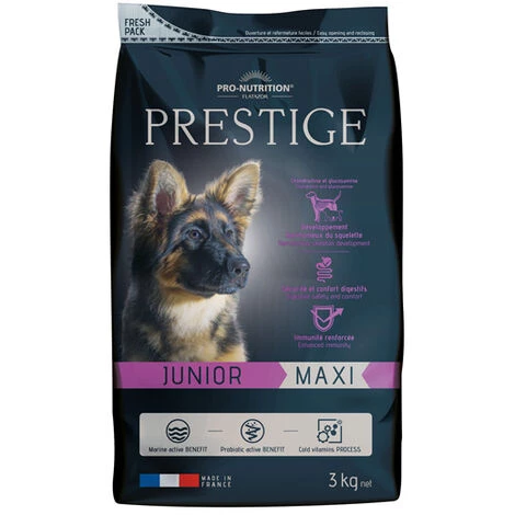 Sécurité et confort digestifs : l’association de probiotiques (Enterococcus faecium) et de prébiotiques (FOS et MOS) favorise le développement de la bonne flore intestinale. Les ingrédients hyperdigestibles, le charbon végétal et l’argile sécurisent le transit digestif encore immature du chiot. La taille des croquettes Flatazor Prestige Junior Maxi adaptée aux chiots participe à une digestion optimale.