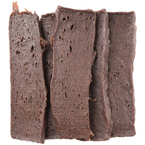 - composition: agneau (79,8%), glycérine (6%), amidon (6%), sorbitol (4%), protéine végétale (4%), sel (0,2%)
