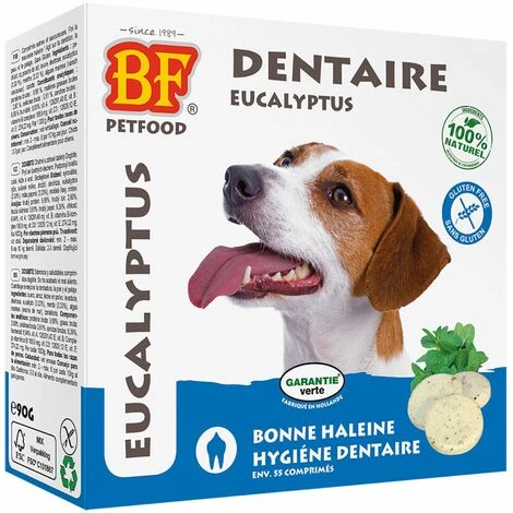 Ces comprimés à base d’extraits d’eucalyptus et d’algues marines agissent directement sur la dentition et neutralisent la mauvaise haleine. Comprimés friandises BIOFOOD pour agir sur la dentition et l’haleine de l’animal. 100% naturel et sans gluten Bon pour la peau et le pelage (y compris la perte de poils). Pour toutes les races de chiens et de chats. Boîte de 90gr / soit 55 comprimés Contient des algues marines , de l’ eucalyptus , de la menthe poivrée , des vitamines (A, B, D et E) , et des minéraux .