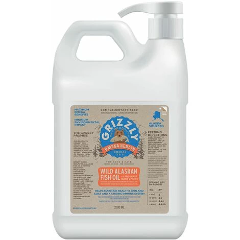 Cette huile à base de saumon et de colin apportera à votre animal équilibre et force pour son système immunitaire. Riche en Oméga 3, elle gardera votre animal en pleine forme.Disponible en plusieurs conditionnements. Aliment complémentaire Grizzly à base d’huile de saumon et de colin très apprécié des chats et des chiens, Très appétant. Idéal sur les croquettes et la patée, Produit avec une qualité alimentaire fine et pure, Équilibre le régime de votre animal, riche en EPA et en DHA , des acides gras polyinsaturés oméga 3 à longue chaîne, Poil brillant, peau saine, vitalité et appétit, Avec des extraits de romarin, Huile de saumon 50 %, Huile de Colin 50 % Vendue avec un flacon pompe pour une utilisation plus facile, Conditionnements disponibles : flacon 125ml, 250 ml, 500ml, 1L et 2L.