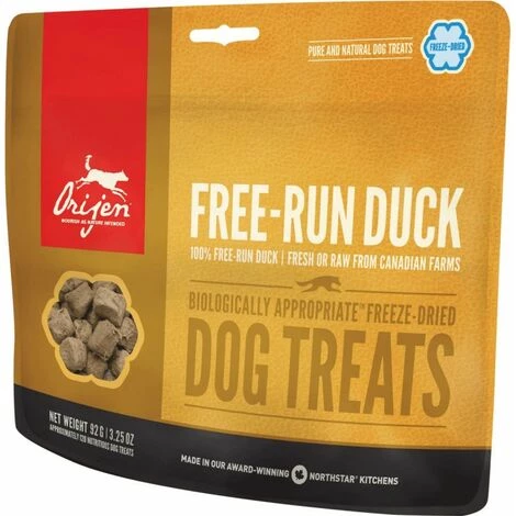 Les friandises Orijen Free-Run Duck Treats sont lyophilisées de façon à ce que les bienfaits et les saveurs de la viande fraîche soient conservés.