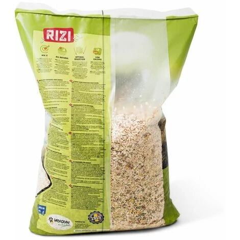 Rizi est une source précieuse et essentielle de glucides, de fibres alimentaires et minéraux; peut être administré en association avec des aliments secs, aliments humides, aliments surgelés, ou BARF(Biologically Appropriate Raw Food).