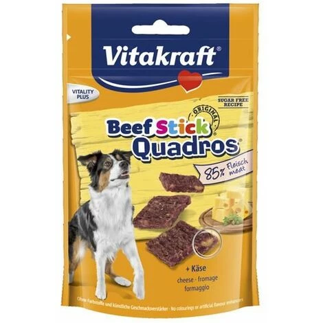 Les chiens vont craquer pour ces petits carrés de viande enrichis avec des morceaux de fromage apparent. Une teneur en viande de 85 % et un goût succulent. Recette sans sucres. Sans colorants ni arômes artificiels.