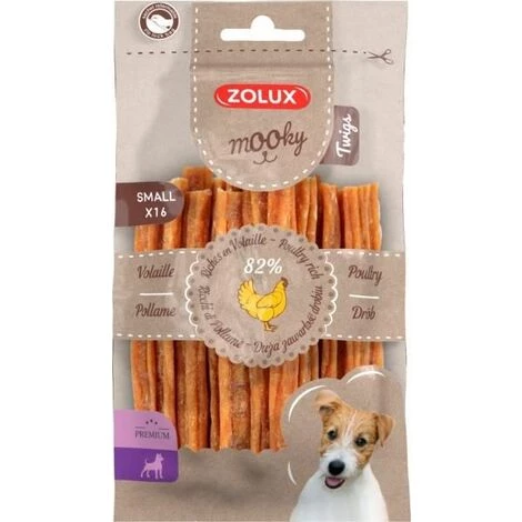 Cette savoureuse friandise Mooky Premium à la volaille et à la carotte fera le régal de votre compagnon. Savoureuse et très appétante à la texture moelleuse avec une forte teneur en viande. Riche en volaille, elle est fabriquée en Europe. Sachet fraîcheur refermable grâce à son zip. Composition : Viandes et sous-produits animaux (volaille 73%), sous-produits d’origine végétale, légumes (carotte 11%), sucres, substances minérales. Composition analytique : Protéine brute 27,10%; Matière grasse 8,60%; Cendre brute 1,10%; Cellulose 4,00%; Humidité 20,30%