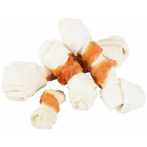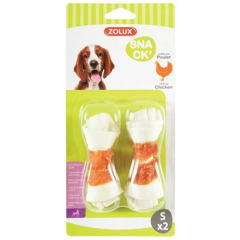Elaborée à base de peau de bovin, cette friandise est riche en poulet (38%). Contribue à lhygiène dentaire (effet de mastication). Composition : peau de bovin, poulet 38%, glycérine, protéines végétales, sel. Composition Analytique : Protéine brute 88.00%, matière grasse 2.00%, cezndre brute 3.00%, humidité 14.00%