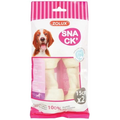 Friandises composées à 100% de peau de bovin. Contribue à lhygiène dentaire (effet de mastication). Conditionnement : 15 cm x2. Composition analytique : Protéine Brute 80%, Matière grasse 1.25%, Cendre brute 11.6%, cellulose 3%, Glucide 0.15%