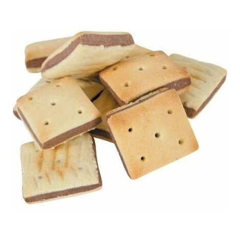 Biscuit sandwich carré 2Kg. Composition :Céréales, Huiles et graisses, Sucres, Substances minérales. Additifs (par kg) : Antioxygènes, Conservateurs, Colorants. Additifs nutritionnels : Vitamine A : 12 500 U.I., Vitamine D3 : 1 000 U.I. Analyse moyenne : Protéine brute 8,5%, Matière grasse 10%, Cendre brute 3%, Cellulose 1,8%. Fabriqué en France.